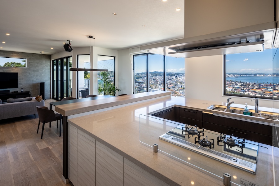 大きな窓から海や青空など景色を楽しみながら料理・片付けができます。