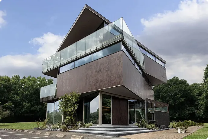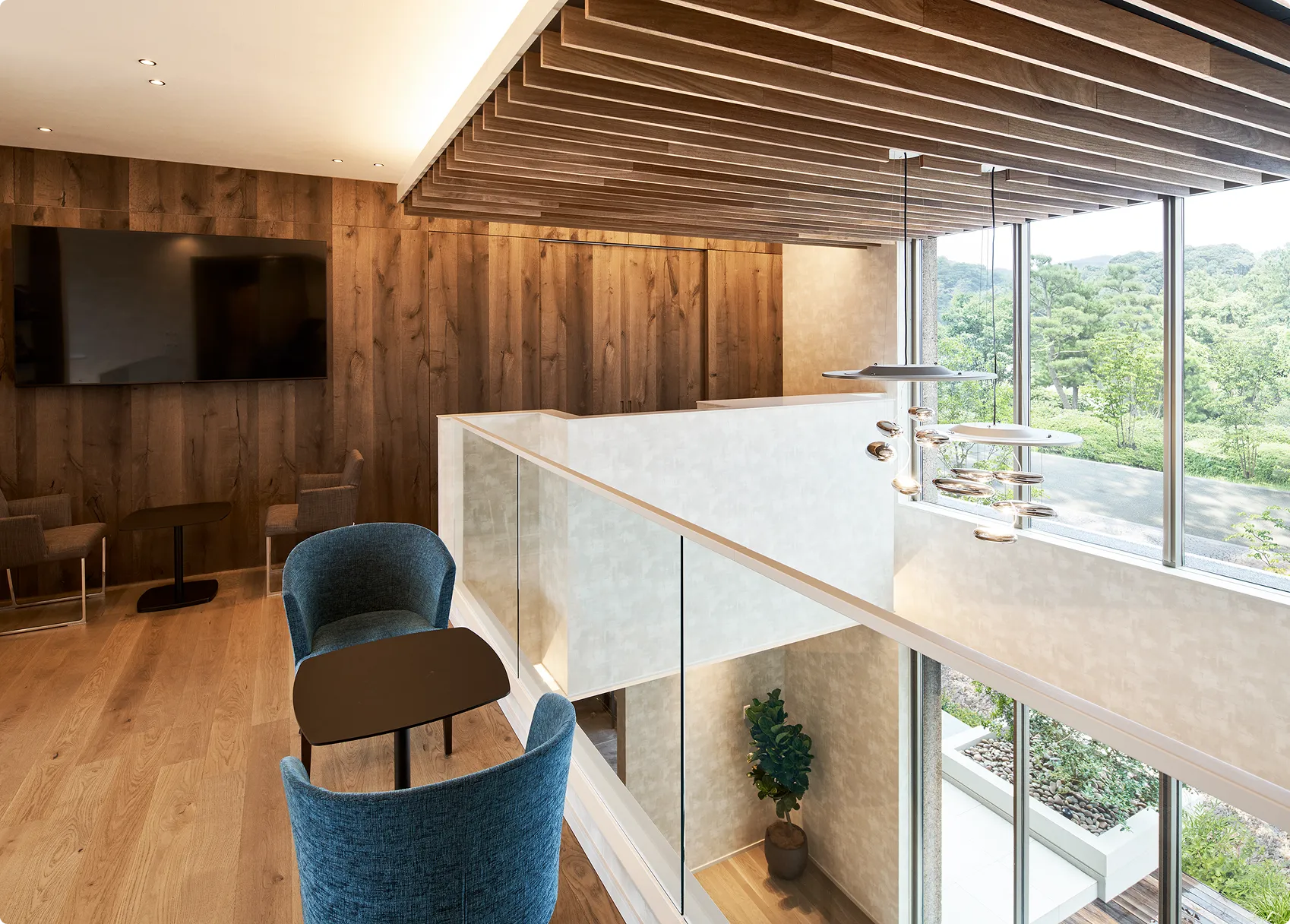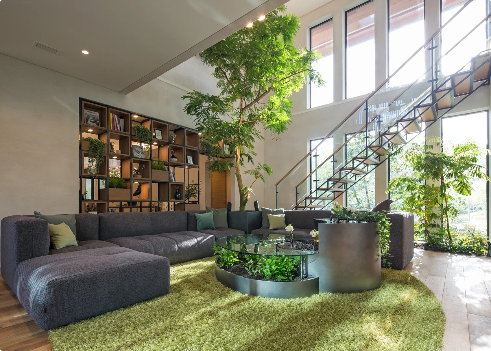 画するので、一般の個別壁掛けエアコンに比べ、吹き抜けやロフトのある空間でも快適性を保つことができます。また、たとえば都市部の敷地の特性を活かした住まいでも、全館空調を導入することで自由度の高い内装デザインを実現できるようになります。