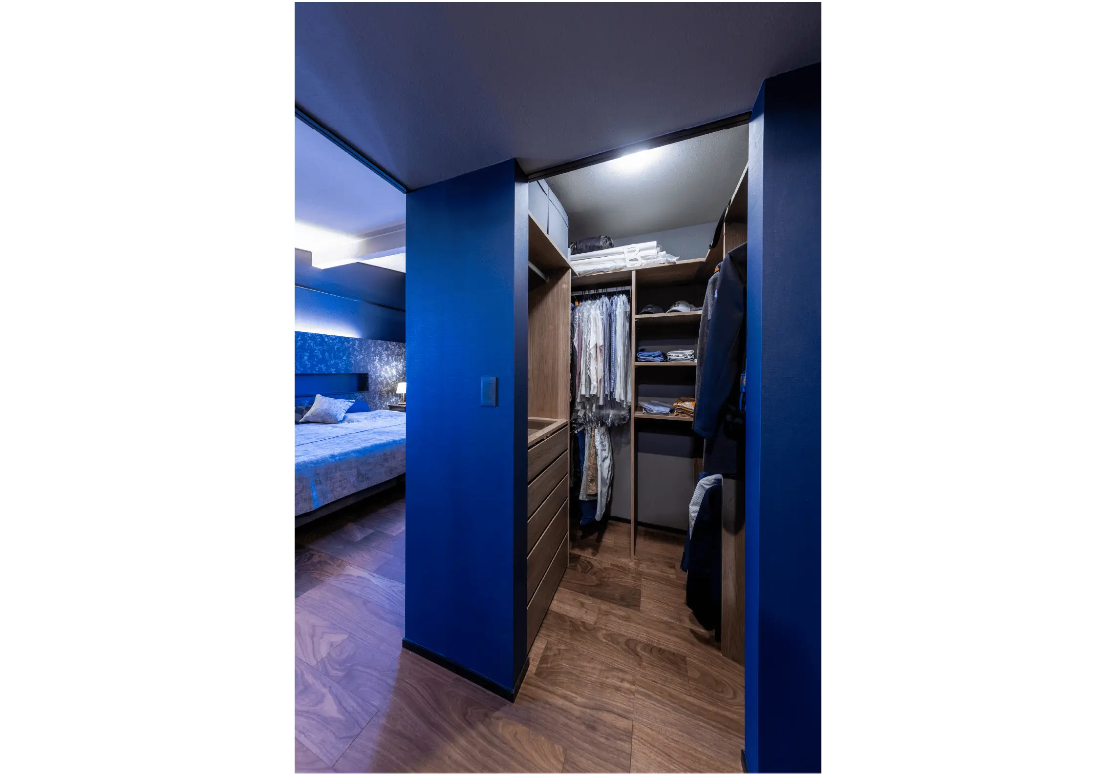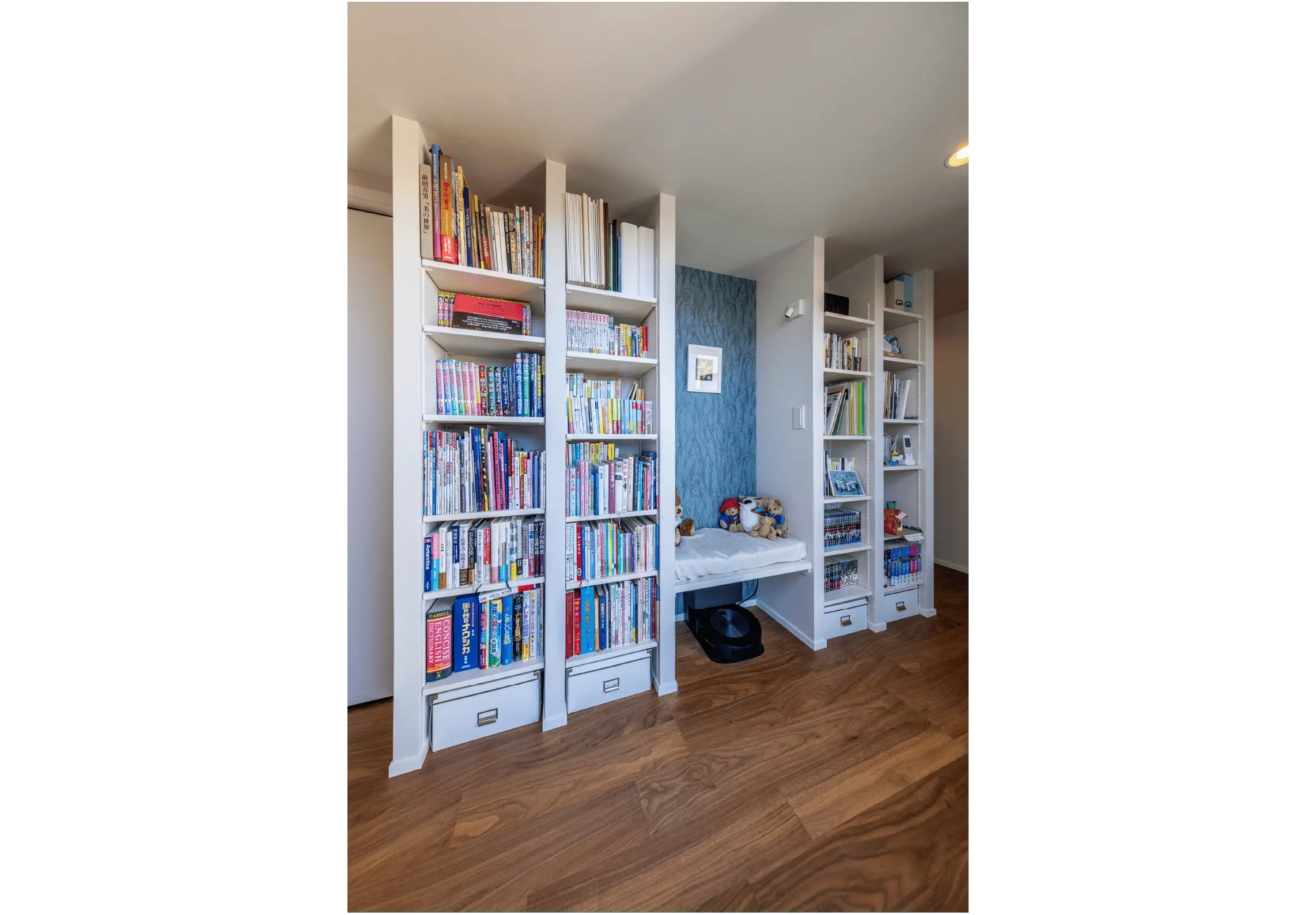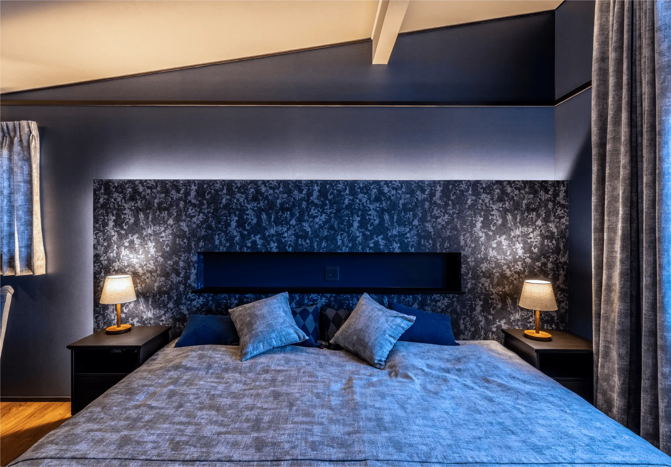 「私たちがリストアップした家具に対し、ちゃんと収まるかどうか、部屋の大きさとのバランスはどうかなど、設計者が綿密に計算してくれました。置く位置が決まっていたから、寝室のベッドボードやニッチ(壁のくぼみ)はこんな感じにして、反対側にはこういう照明をつけて、と想像を膨らませやすかったですね」