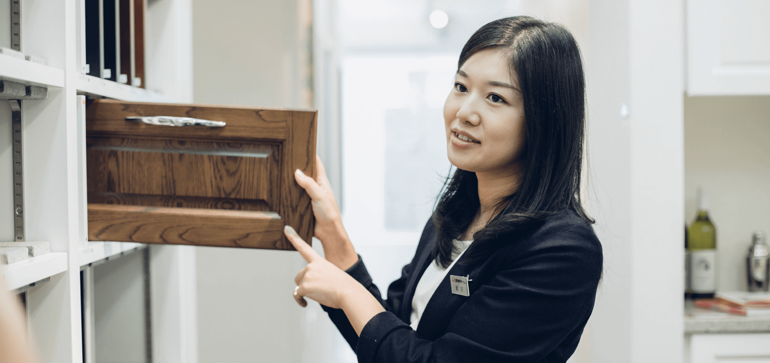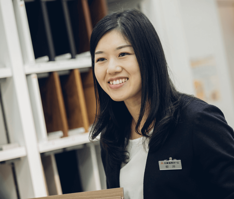 三菱地所ホームへ入社した理由は、いくつかの住宅メーカーを見て回る中で、特に“個人”を大切にしている印象があったこと。また、営業のほか設計やインテリア、リフォームなど、仕事のフィールドも多岐にわたっているように感じました。