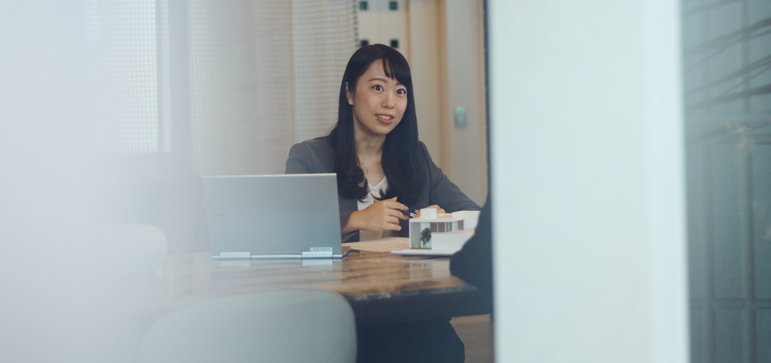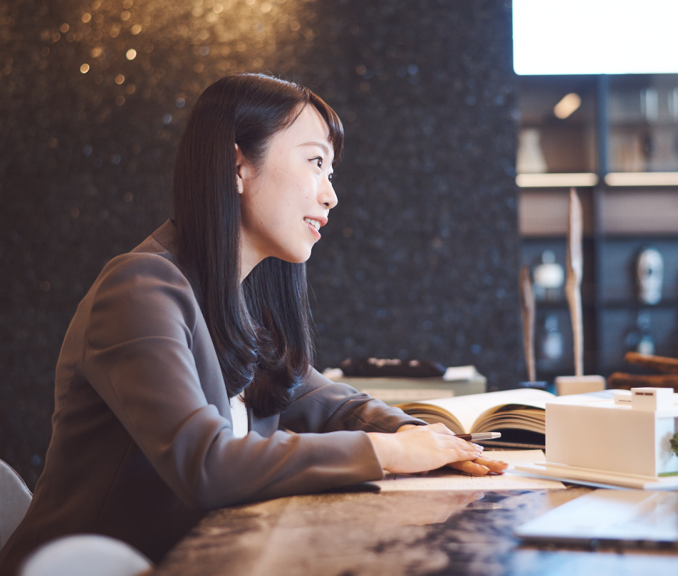 三菱地所ホームを志望した理由は、大きく3つあります。1つ目は、契約前からお引渡しまで一貫して担当できる点。「お客様にどこまでも寄り添い続ける設計担当者でありたい」と考えていた私にとって、一貫して担当できる点はとても魅力的に映りました。2つ目は、自由度の高い設計技術。こだわりの実現はもちろん、独自の空調技術「エアロテック」など、心からお客様へ「薦めたい!」と思う技術を持ち合わせていた点です。3つ目は、働く人です。インターンシップで目にした社員がいずれも明るく温かい雰囲気で、皆が同じ方向を見て働いている印象を抱きました。こうした点から、とても早い段階で三菱地所ホームを第一志望にしていたため、面接を経て採用の連絡をもらった時は本当に嬉しく、すぐさま入社を決めました。