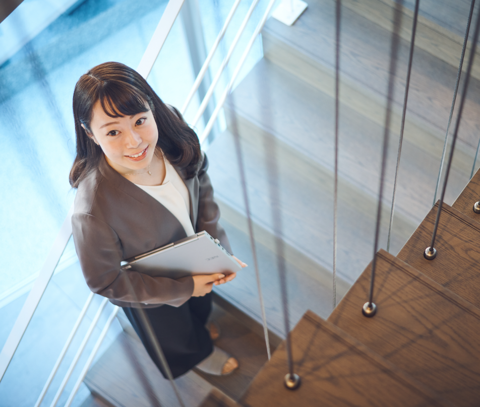 三菱地所ホームの強みの1つは「少数精鋭ならではの、活躍できるチャンスが多い環境」です。社員数500名未満の規模だからこそ、年次に関係なく、先輩社員や上司の手厚いサポートを受けながら大きな案件にチャレンジできます。1つとして同じ条件のない物件を目の前に周囲のフォローを受けながら挑戦する毎日は、学生時代には想像もできないような学びに満ちています。