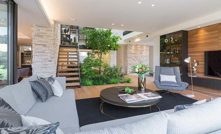 空調を考慮すると、一般的には空間デザインに制限が生じがちです。全館空調「エアロテック」は、家全体の空気を一元管理することで、従来のエアコン設置に伴うデザインの制約を大幅に緩和します。これにより、都市型のモダンデザインを活かした広々としたリビングや、大きな窓を取り入れた開放的な空間設計が可能になり、妥協のないデザインが実現します。