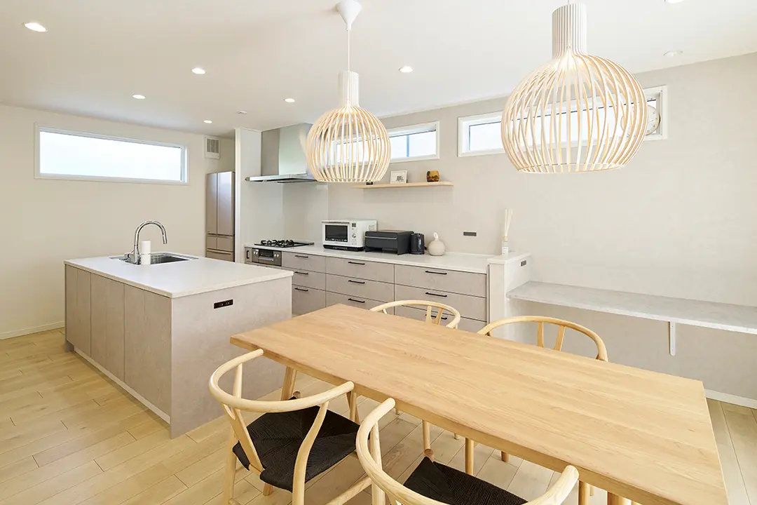 ツーバイネクスト構法は、耐震・耐火・耐風性にすぐれた進化型ツーバイフォー工法です。この構法により、大開口や壁の少ない開放的な空間設計が可能となり、オープンな間取りやビルトインガレージなど、自由なプランニングが実現します。大空間を確保しながらも、断熱・気密性能がしっかりしているため、理想の住まいを自由にデザインできる点が大きな魅力です。