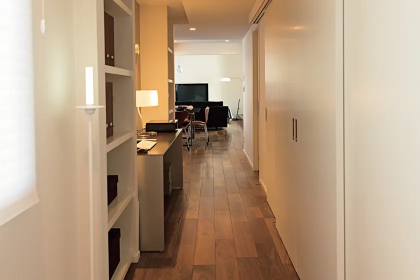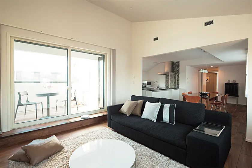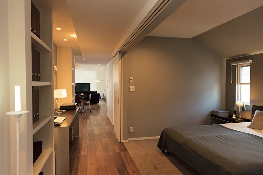 東京下町の面影を残す住宅街。白を基調とした外観は、コーナーに配した淡いグレーのカラーリングと壁面から少し引き込んだ黒のサッシ窓がモダンで洗練された印象でありながら、下町の風情を残す街並とやさしく調和しています。 「ここは私が育った町。人情味のある町にとても愛着を持っています」と話すのは、この土地でお爺様の代から三代続く家業を営んできたご主人様。K様の代に替わり、老朽した実家を今後どうしていくか、家族の暮らしや将来設計を考えていた時期に「二世帯で暮らすことも含めて、一緒に考えさせて欲しい」という長男からの言葉をきっかけとなり、二世帯住宅と将来の経済的な安心を生みだす賃貸経営を検討しはじめることに。「息子から声をかけられるとは思いませんでした。うれしかったですね」と振り返ります。