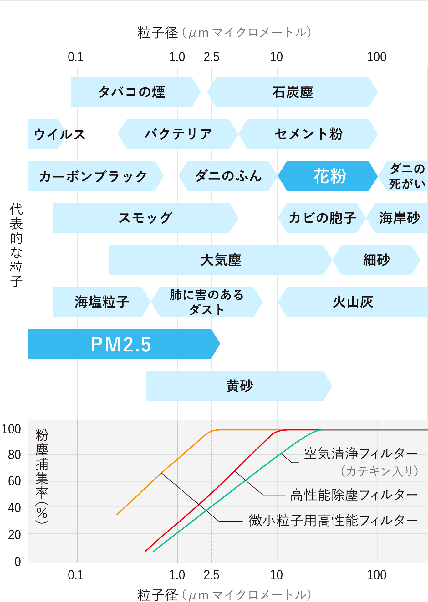 エアロテックに標準搭載される空気清浄フィルター、高性能除塵フィルターは、花粉はもちろんカビや砂埃に対しても効果を発揮します。