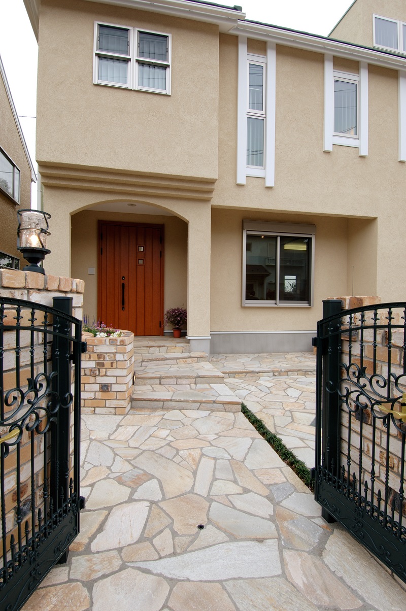 外観は南仏風。玄関扉を空けると和の異空間