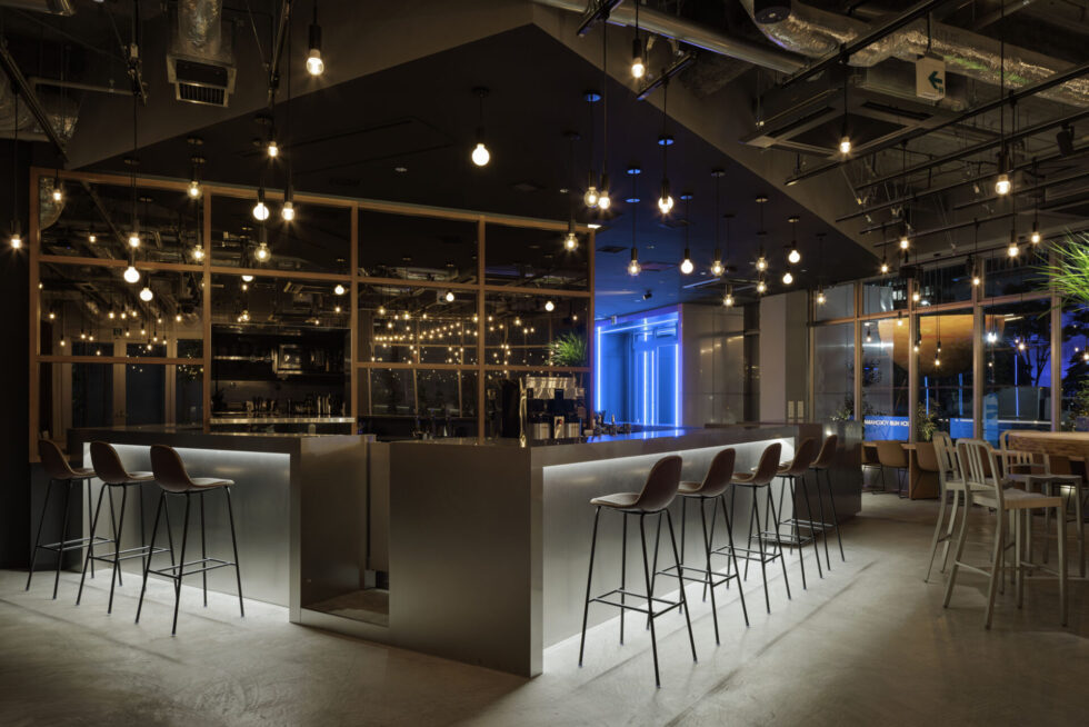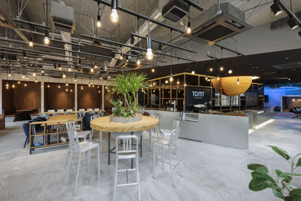 1階のカフェレストランでは、明るく開放的な雰囲気の中で利用者同士の自然な交流が生まれ、イベント開催時にはネットワーキングの場としても活用されます。