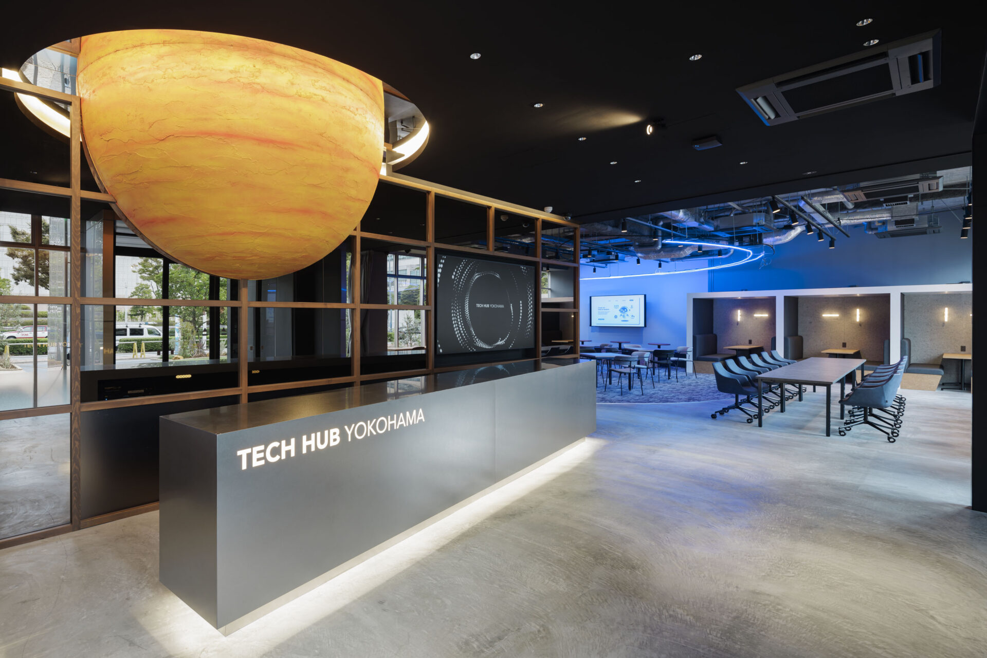 つなぐ”力でイノベーションを生み出す横浜市の技術系スタートアップ成長支援拠点として、人と人、技術と未来、地域と世界を結びながら新たな価値を創出することを目指すこの施設は、メインエントランスに広がる大きな惑星オブジェが象徴するように、訪れるだけで未来を感じられる空間を備えています。